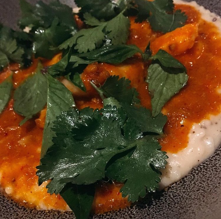 - Anson Mills Grits – Key west pink shrimp, crab curry, thai basil