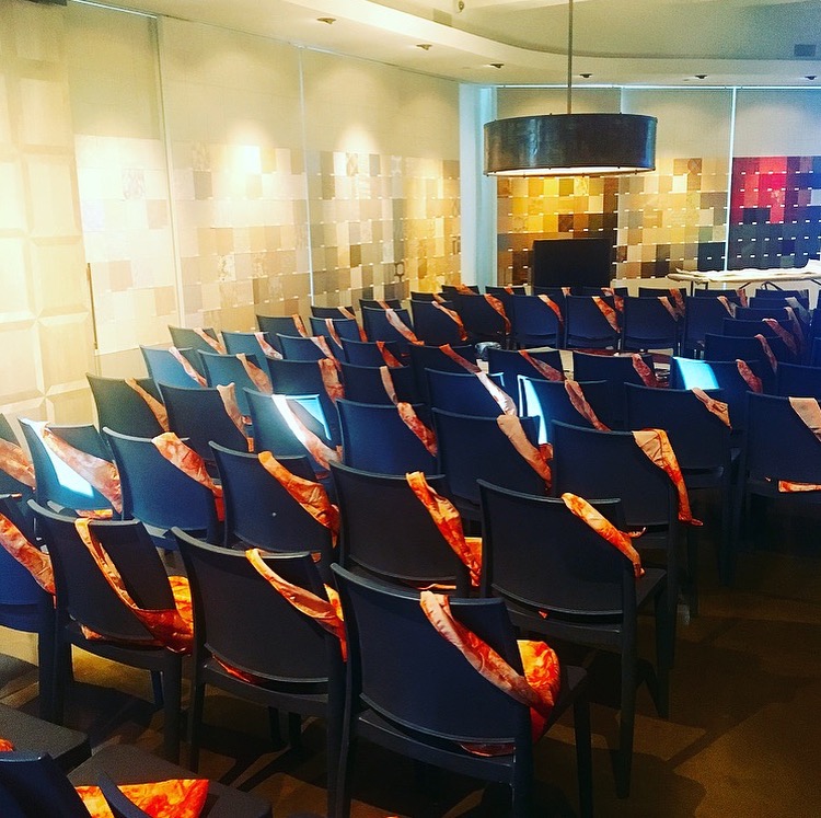 Maya Romanoff is the largest manufacturer of handcrafted wall coverings in the United States. They’ve been in Chicago since 1969 and will be celebrating their 50th year anniversary in 2019. The Design Chicago seminar gave us a comprehensive overview of the trajectory of handmade wall papers since the 17th century by CEO Joyce Romanoff. The presentation began with breakfast and a live painting demonstration by an artisan from the Maya Romanoff Chicago studio who created two wall coverings. ( Pictured: Grecian Crystal Wall Covering Demonstration) Joyce seminar was very informative and being able to see a live demonstration of their products was very worthwhile.