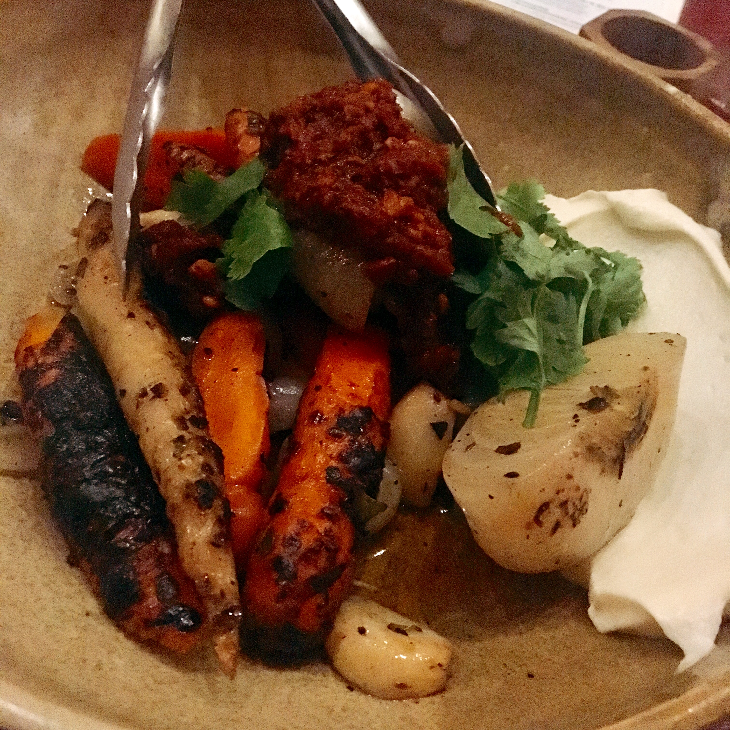 –ย ย Grilled Carrots “en Vinagre”, Pepita salasa roja, queson fresco