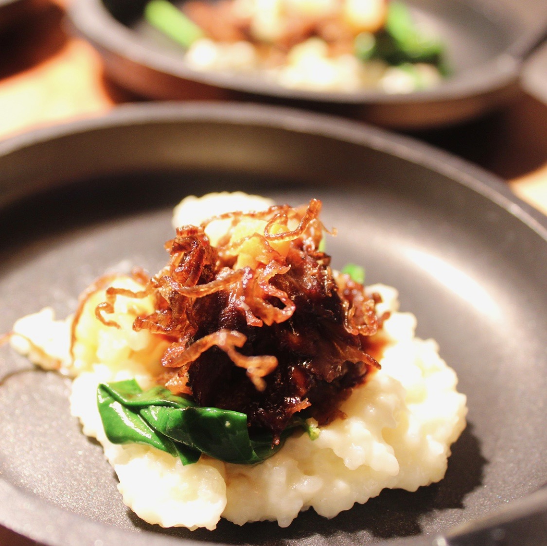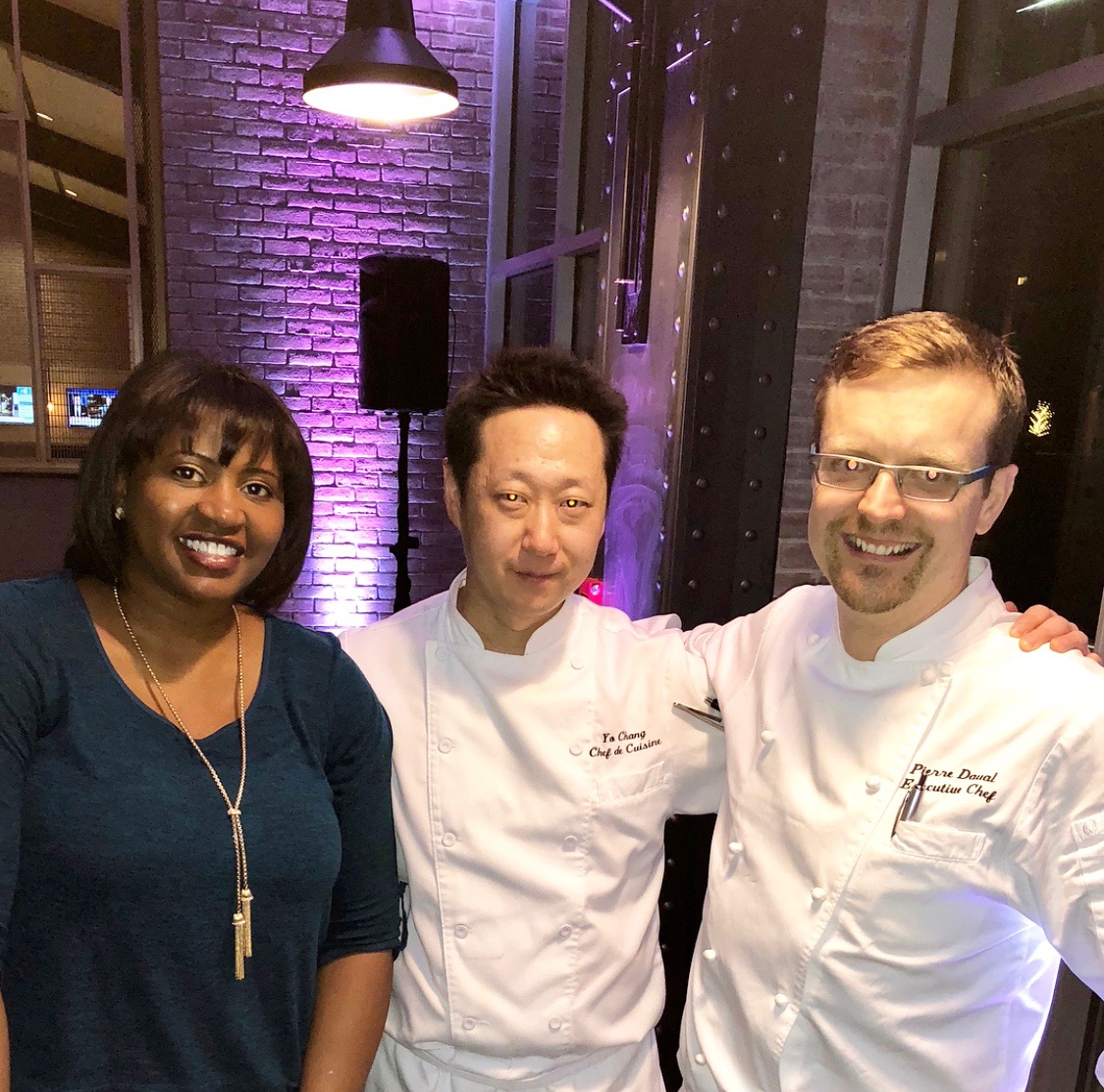 Our wonderful hosts Chef Pierre Daval and Chef Yo Chang walked us through several signature dishes on the seasonal wood fire menu. Chef Jessica Gnaster capped off our evening with a decadent dessert  Check out the wood-burning grill placed prudently in the middle of the restaurant.